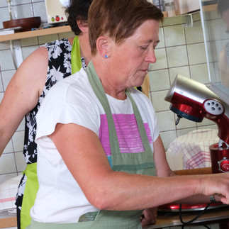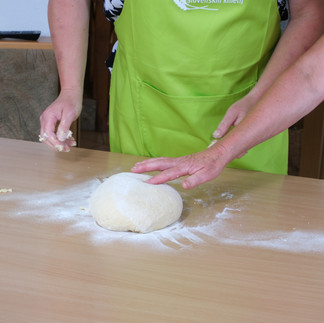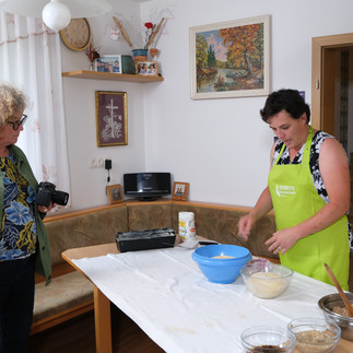 Da skrajšam: te dni je usklajena štiričlanska ekipa, ki snema Pasta Grannies, prav zares prišla v naše kraje. Posneli so sedem slovenskih babic: eno v Istri, ostale mojstrice domačih jedi pa smo poiskali na Gorenjskem. In tako smo se ob koncu prvega snemalnega dne mudili tudi v naselju Prezrenje pri Radovljici, kjer je Polona Fister Toplišek, slaščičarka po poklicu, skupaj z mamo Marijo Fister pripravila potico. Orehovo, se ve.